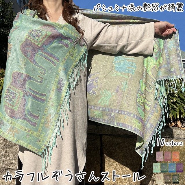 カラフルぞうさんストール ユニセックス インテリアにも最適 アジアン エスニック マフラー ストール プレゼント メンズ レディース fg-s13032