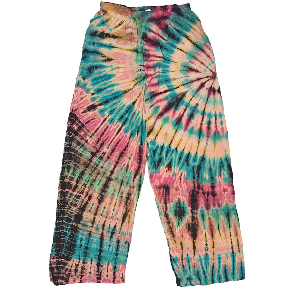 オール1点物!!可愛いくせに楽すぎる☆カラフルタイダイレーヨンストレートパンツ!!股上深めで安心の穿き心地!!海や旅行・部屋着にもちょうどいい◎ゆるりらエスニックスタイルのマストアイテム ap-pt142