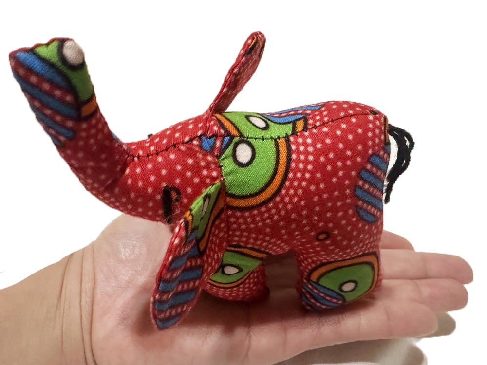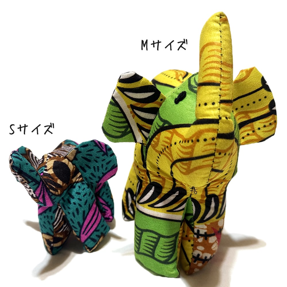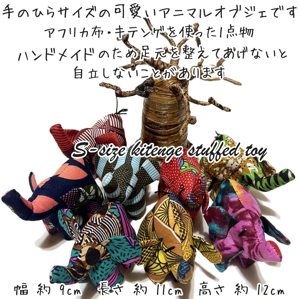 アフリカ布 キテンゲ ゾウのオブジェ アニマルオブジェ ケニア製 1点物 インテリア雑貨 クラフト雑貨 Sサイズ ka-es1