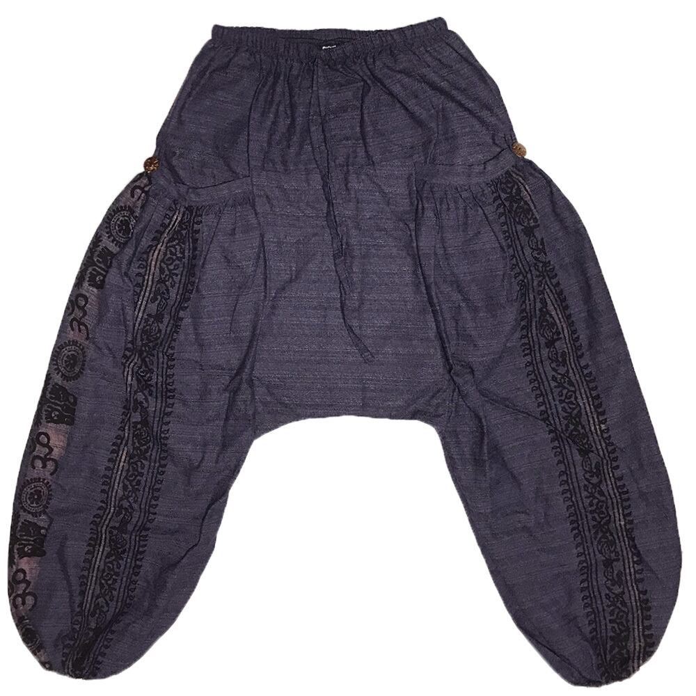 ユニセックスなゆったりサイズ オム柄サイドラインプリント立体ポケット付きサルエルパンツ 男女兼用 モンキーパンツ アジアン メンズ レディース エスニック ap-pt208