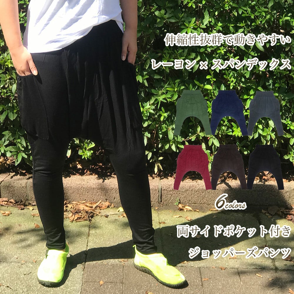 伸縮性抜群で動きやすい レーヨン×スパンデックス両サイドポケット付きジョッパーズパンツ フィット感抜群でアジアン・エスニックコーデはもちろん、スポーツやトレーニングにもおすすめ ダンス衣装 フィットネス ヨガ シンプル 無地 サルエル ゆうメール対応アイテム ap-pt214 | アジアン・エスニック ramah
