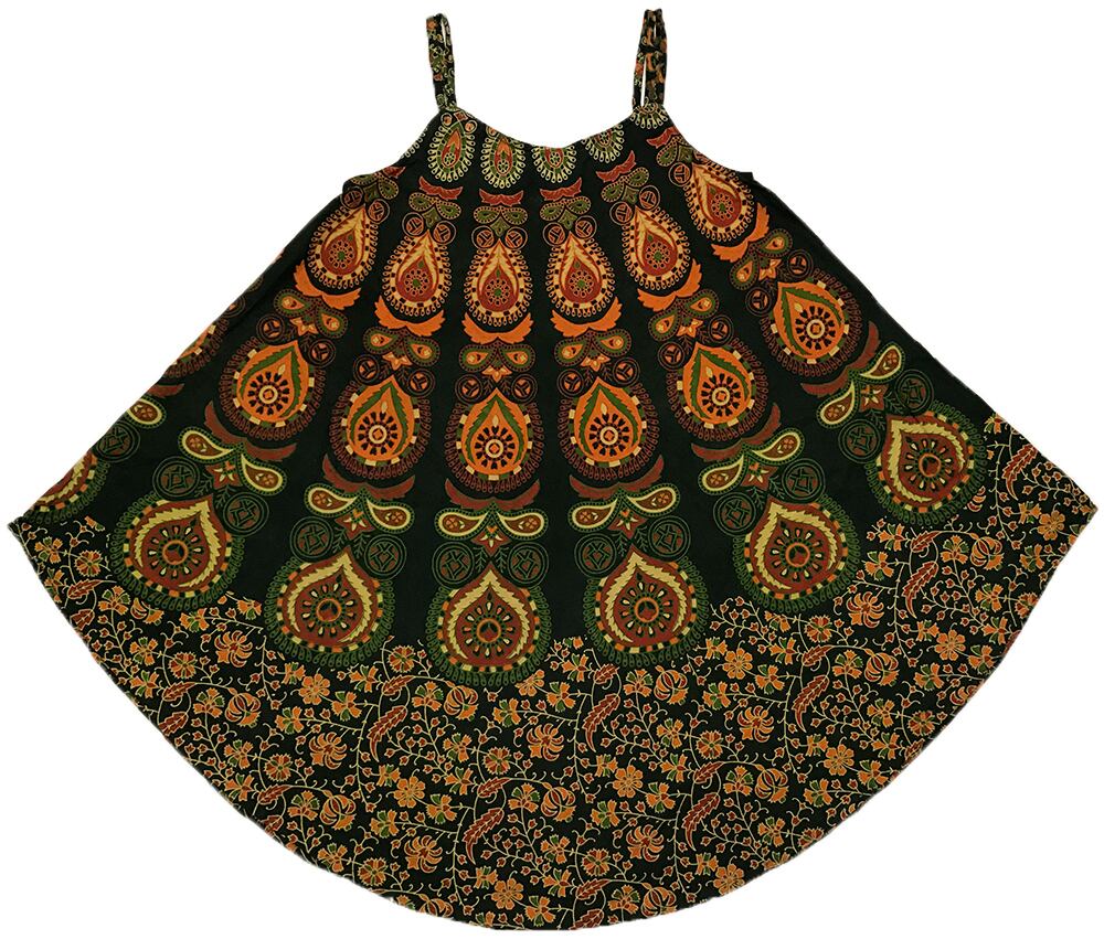 しっかりコットンでロングシーズン着回せる インド系エスニックプリントふんわりラインのサーキュラーワンピース サイドが短いラウンドヘム レイヤードしていろいろな着こなしができる アジアン エスニック キャミワンピ op-100