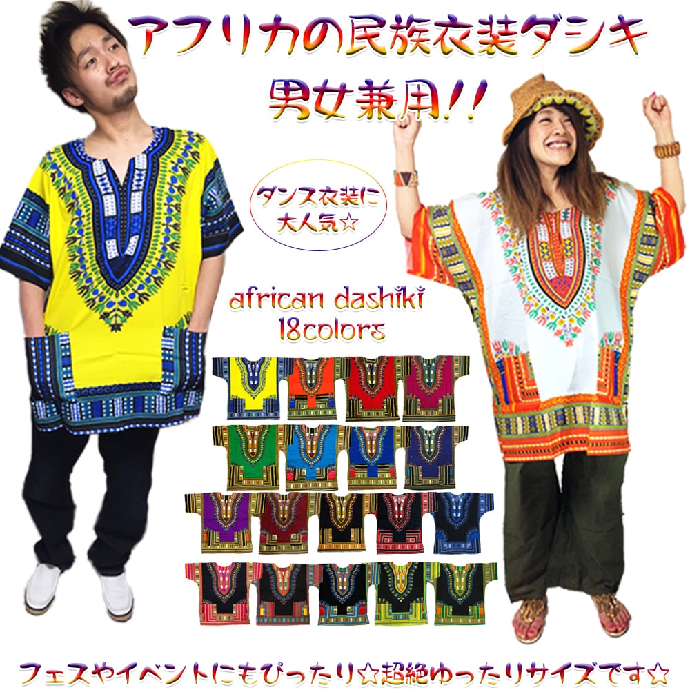 男女兼用!!色鮮やかで個性的なアフリカの民族衣装ダシキです。