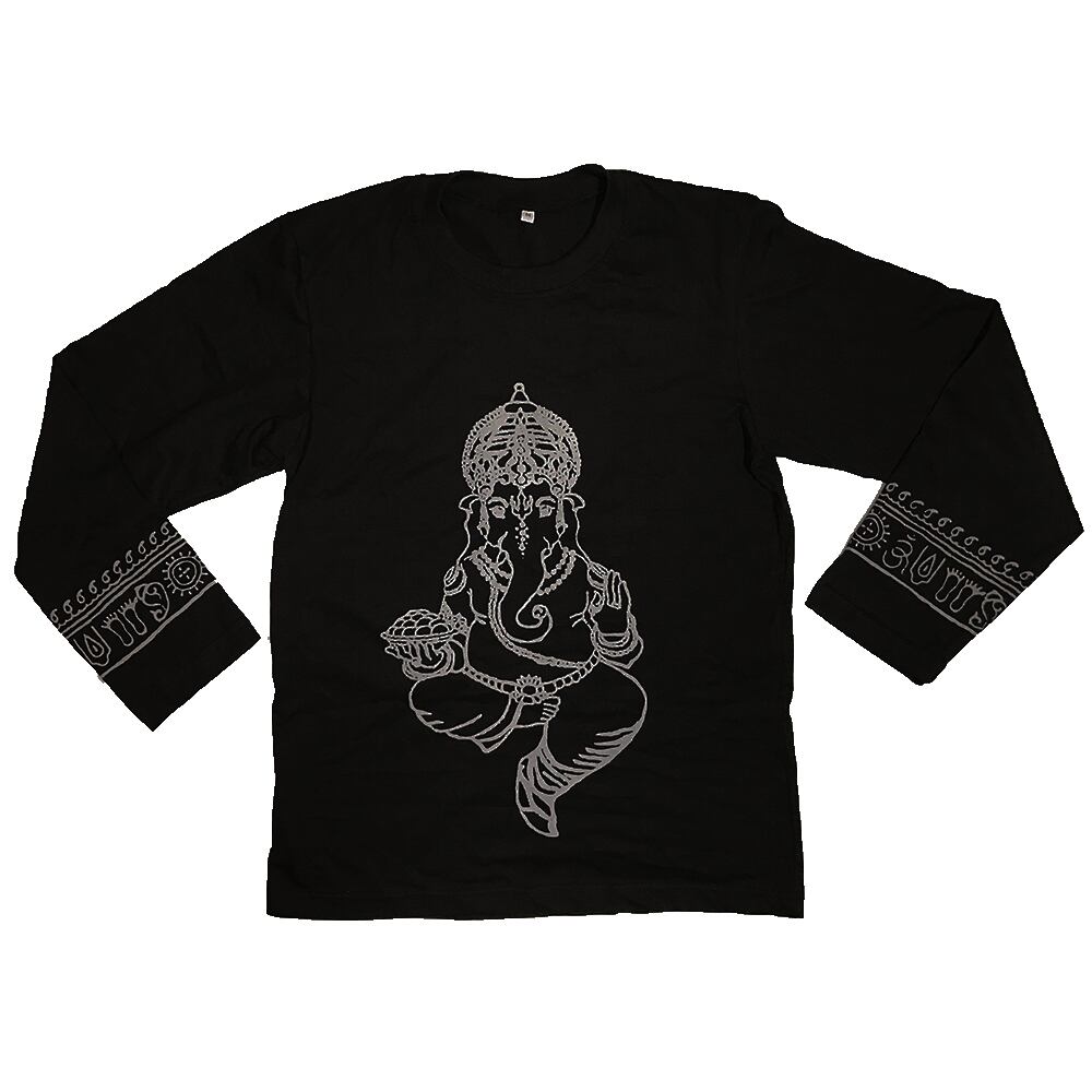 ramahオリジナル エスニックの王道ガネーシャプリント長袖Tシャツ 小さめメンズMサイズ ユニセックスなデザインでメンズ・レディースどちらにもお使いいただけます エスニックアイテムとの相性抜群 ロンT アジアン ap-po159